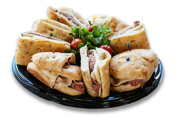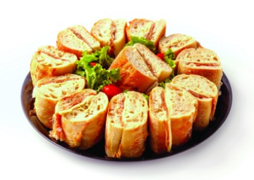 2 sizes available; New Orleans’ famous sandwich with a St. Louis twist! Wedges of our delicious muffuletta sandwich include baked and Glazed Ham, Hard Salami, Mortadella, and Provel cheese topped off with a delicious sliced olive salad.